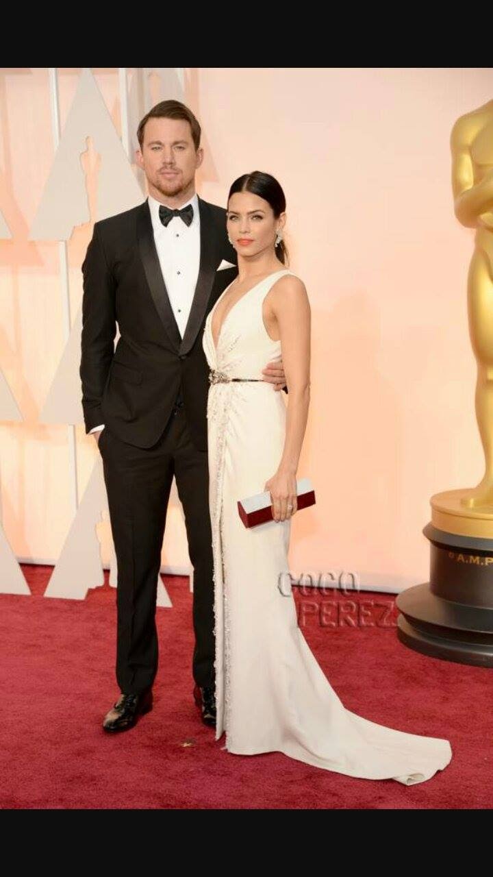 I am a great one among the million girls that would watch a tittle less movie as long as Chaning Tatum is i it. So him wearing that fine black Tuxedo ,fine shoes and the bow tie just adds up to the one million reasons he is just too fine. Accompanied by his lovely wife who also looked amazing in her plunging white dress her clutch and jewelry adding up to the look. Amazing.