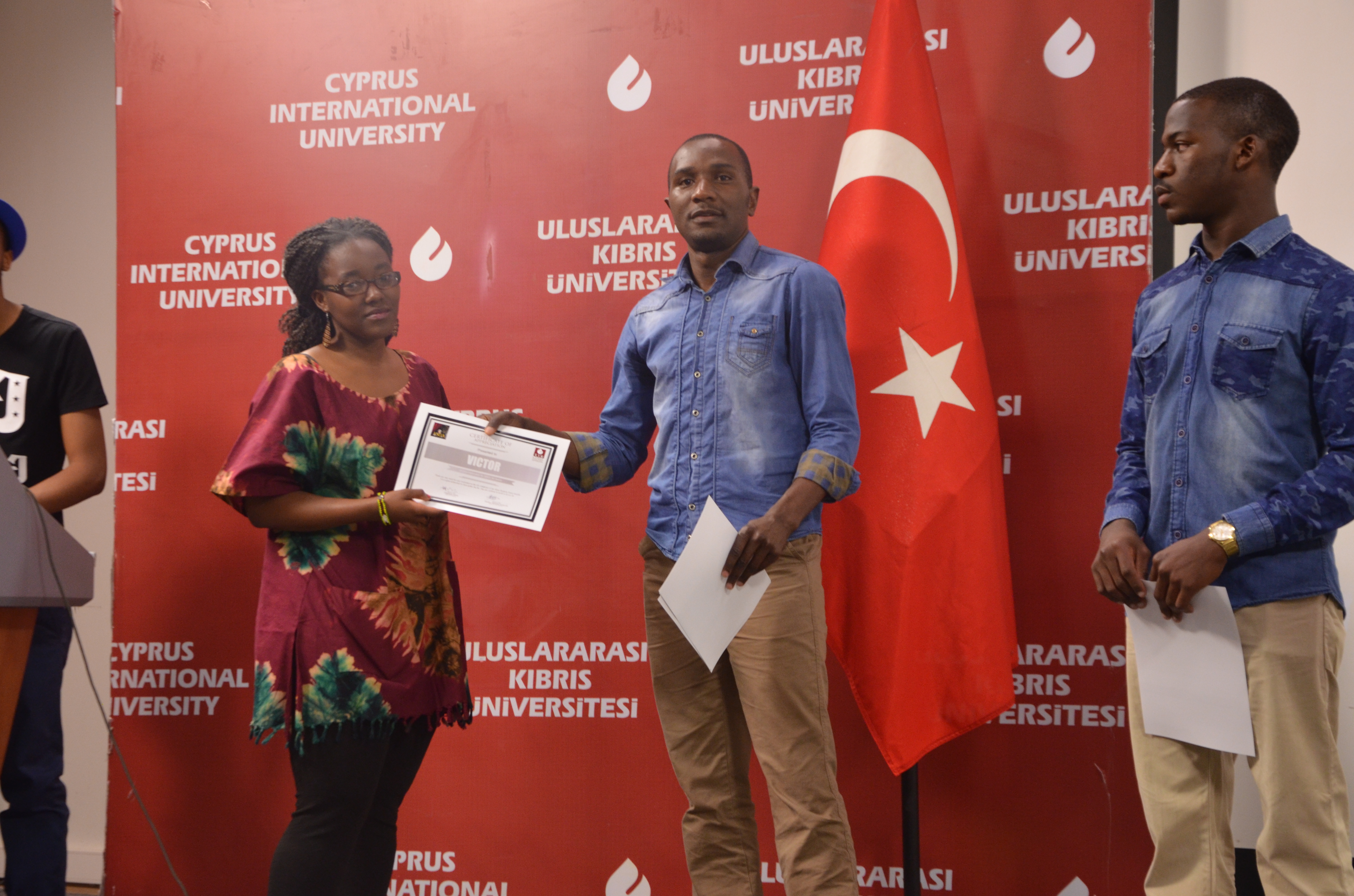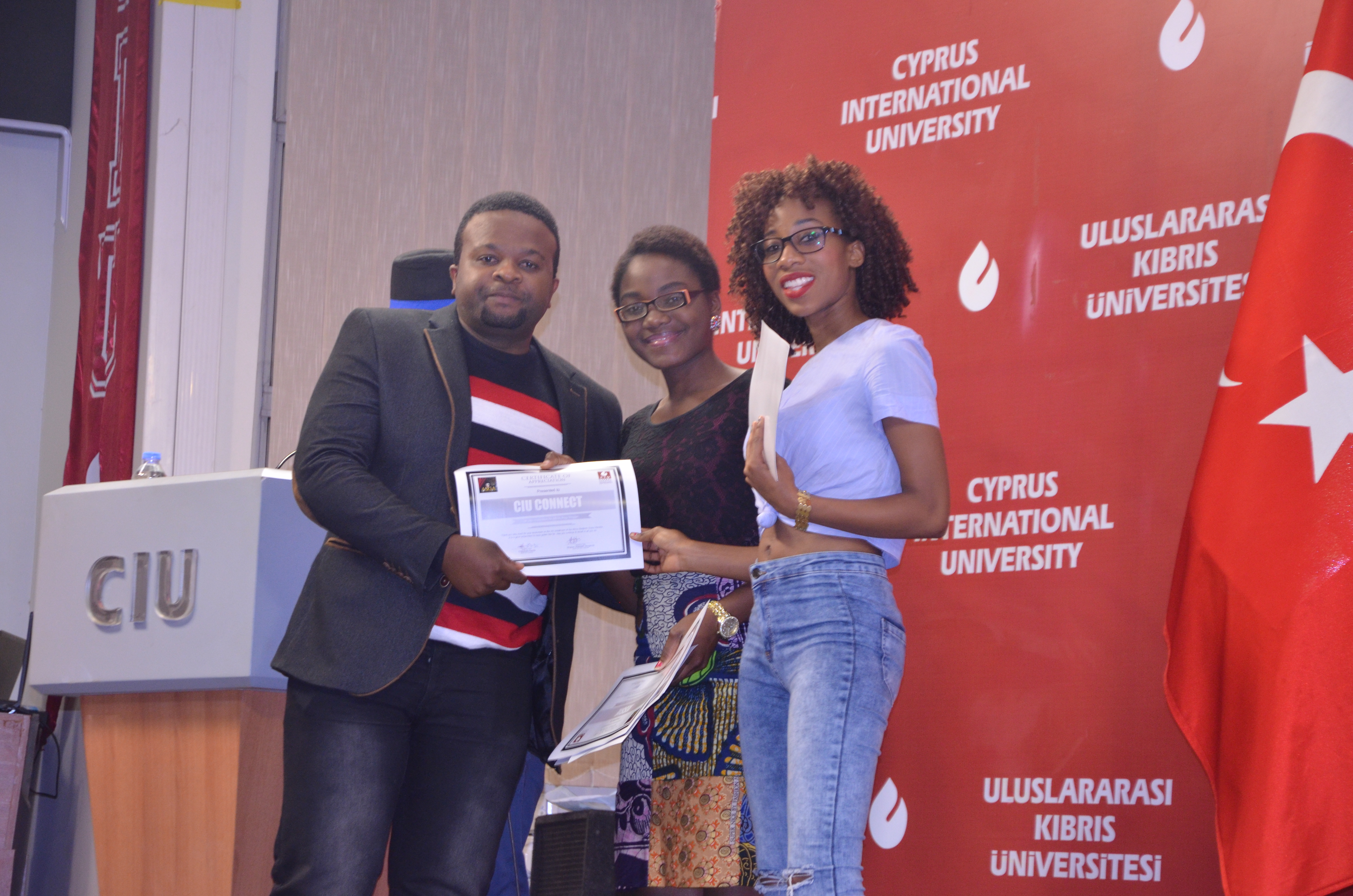 Previous miss C.I.U handing the current Miss a certificate