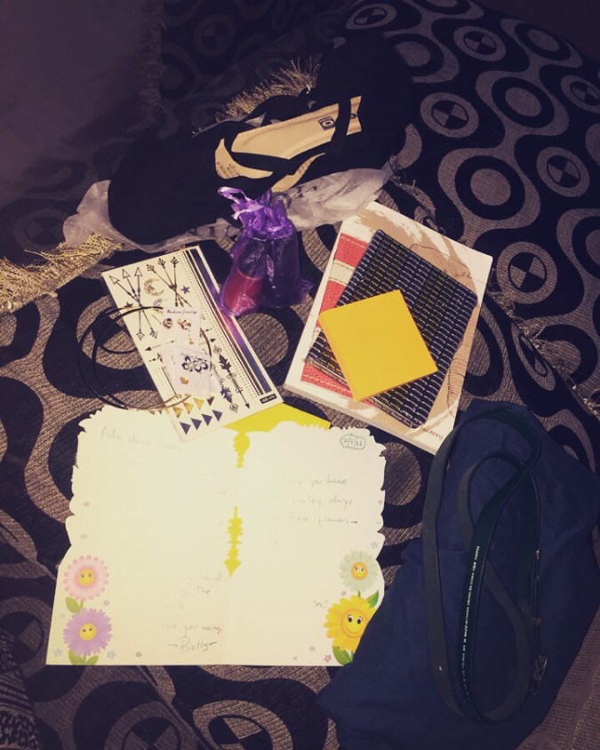 Fast forward to last night when i finnaly had a chance to collect them, openning i got this sudden overwhelming feeling, my word the though she put on every litle thing i once or so mentioned mwe, for a second a almost cried and then a realised am being a baby and pulled ma shit together, she even had a little handwritten card , lord how i love handwritten notes and i quote “I pray you have happy,smiley days like these flowers” ohh my dear sister, what would i do without you.
